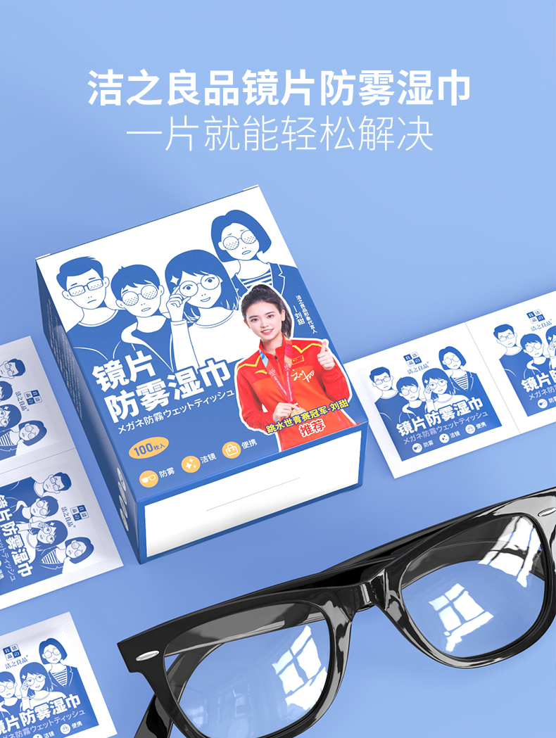 洁之良品防雾湿巾一次性镜片擦拭纸屏幕镜头后视镜眼镜防雾清洁纸