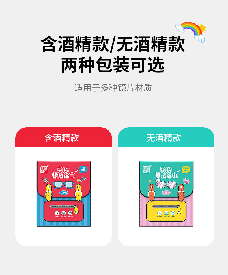 产品名称:含酒精款/无酒精款镜片擦拭湿巾