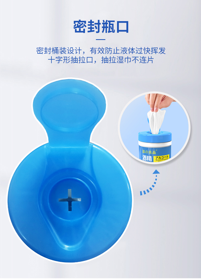 使用说明:打开盖子取出内袋,撕开袋身。取出湿巾穿过桶孔,即可抽取湿巾擦拭。
