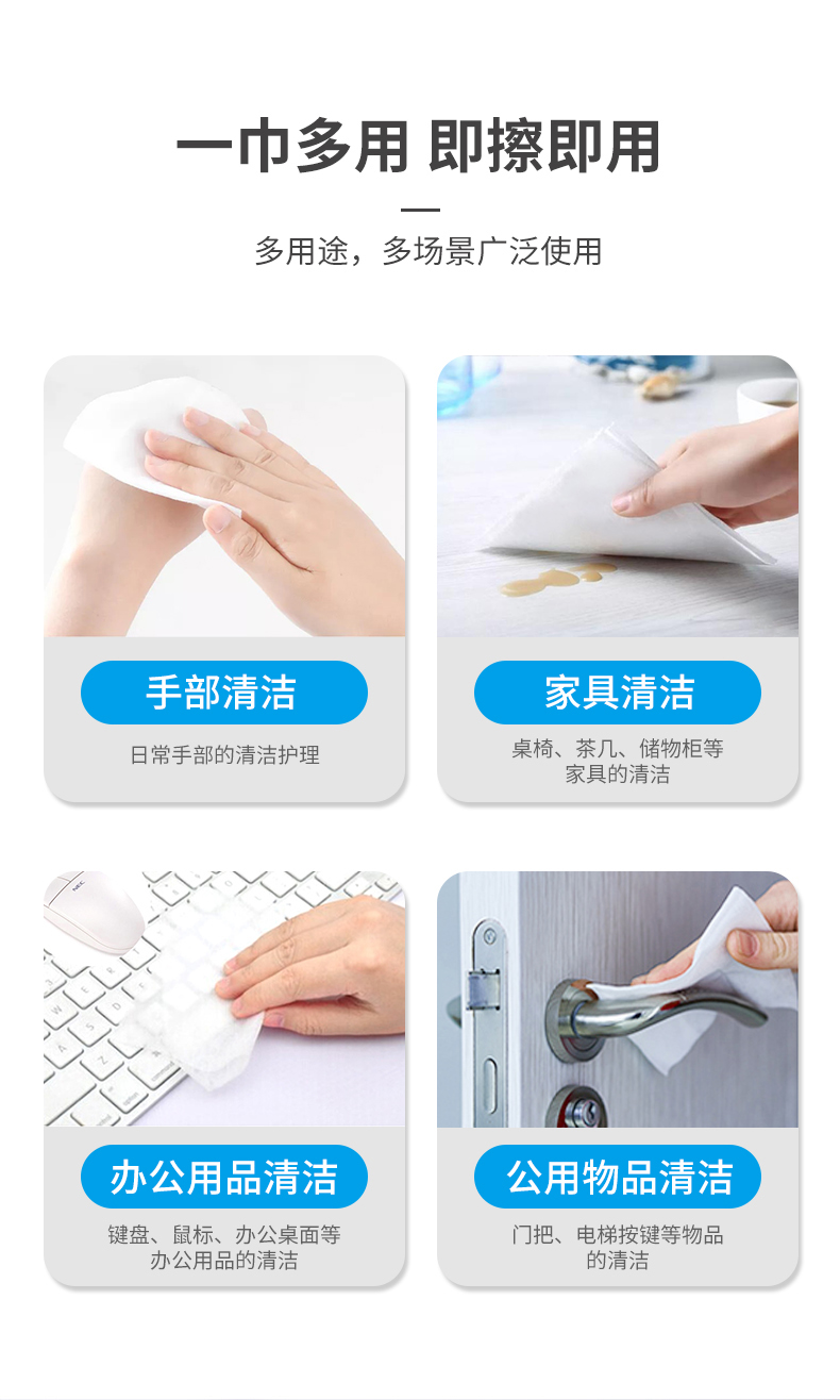 适用范围:桌椅、冰箱等家居物品清洁,户外旅行消毒防护,餐具,儿童玩具以及电脑、键盘等办公用品的清洁消毒。